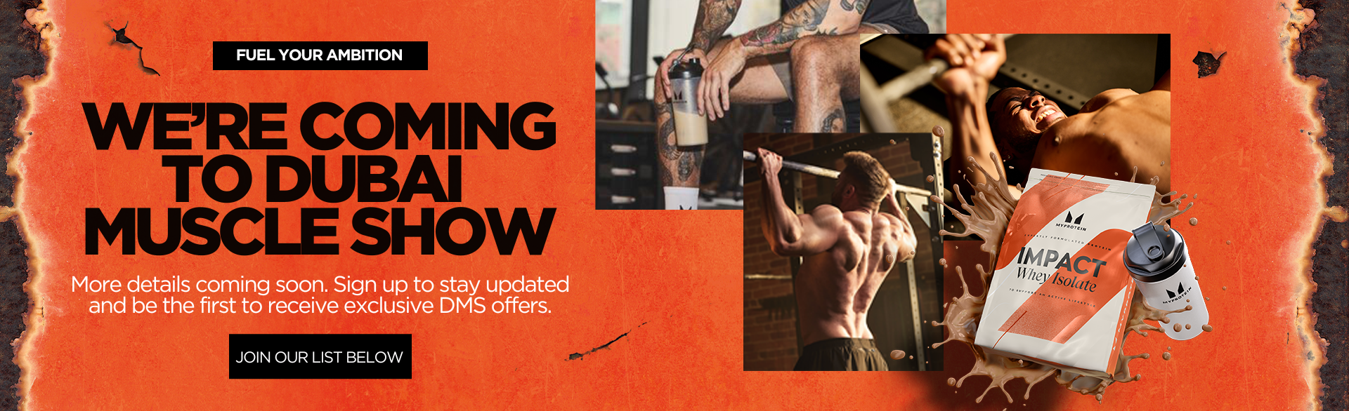 Join us at the Dubai Muscle Show as Myprotein powers the action and brings you exclusive giveaways, epic challenges, new samples, and amazing deals across Dubai.